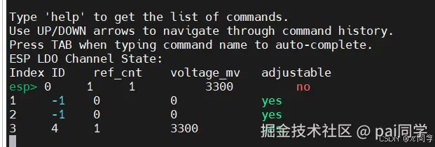 另外原本的esp_ldo_dump函数打印参数没有延时,会导致打印的参数排版错乱。所以我这给每条数据输出延时100ms。