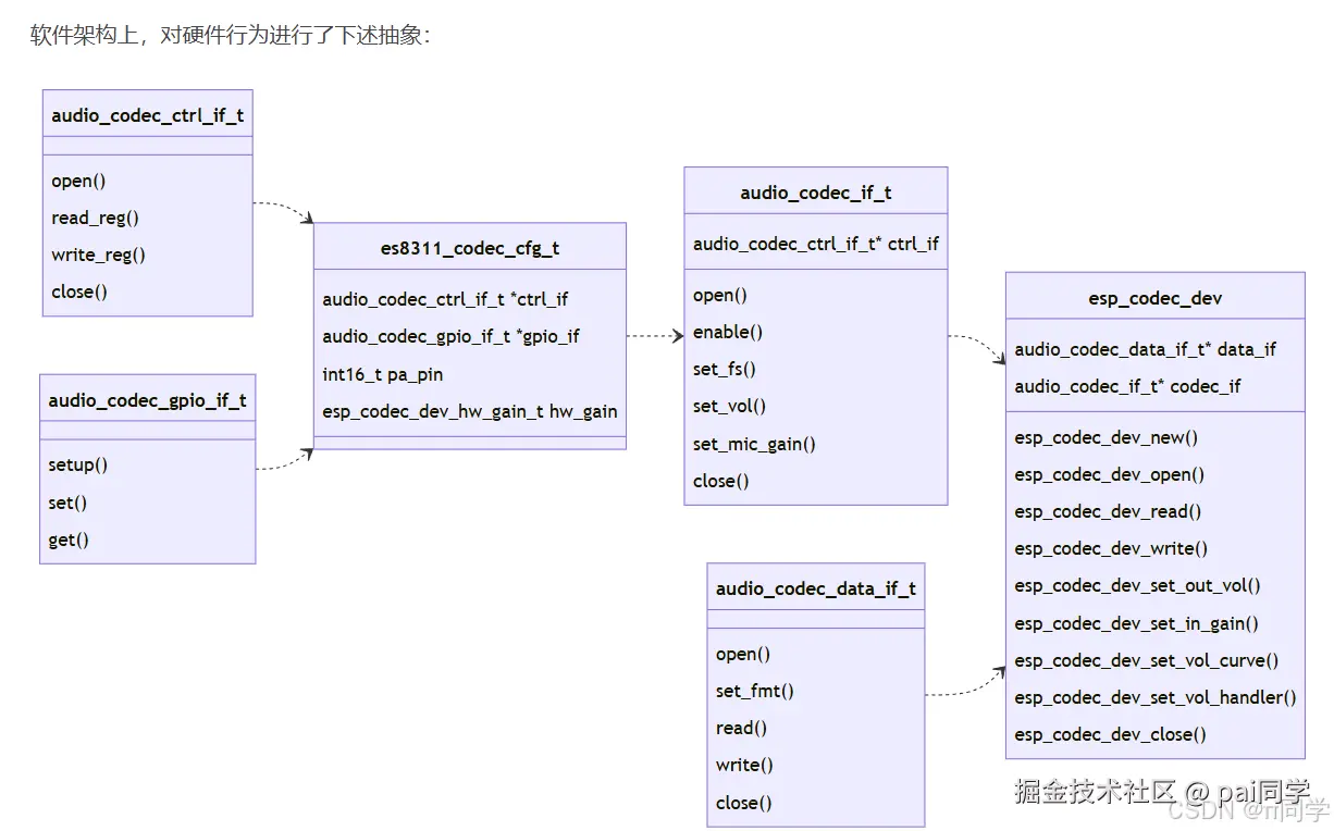 音频解码器是ES8311,上一章也简单介绍了这款芯片的构成。
