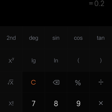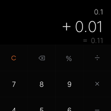 5、比较戏剧的是小米的计算器出现了精分,普通模式和科学计算模式的结果分别为 0.11 和 0.2,我觉得也不怪它。你可以发现,在普通模式下,每次计算都是以上次计算的结果作为输入,所以最终计算结果是 0.11;而在切换至科学计算模式后,会以输入的整个表达式作为计算单元,取得组合结果 0.2,但是这个并不是将 % 号当成单位提取计算的结果,而是遵循运算优先级的直接结果。